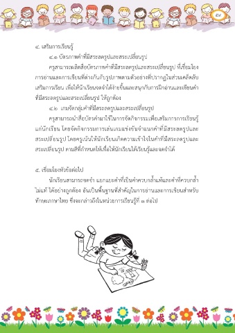 สระเปลี่ยนรูป โดยครูเน้นให้นักเรียนเกิดความเข้าใจในคำที่มีสระลดรูปและ