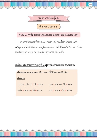 ๗๓ หนวยการเรยนรท ๒ ้ ่ ี ี ่ ู คำและความหมาย ่ ่ ่ เรืองท ๑ คำทประสมตวสะกดตรงตามมาตราและไมตรงมาตรา ี ั ี ่