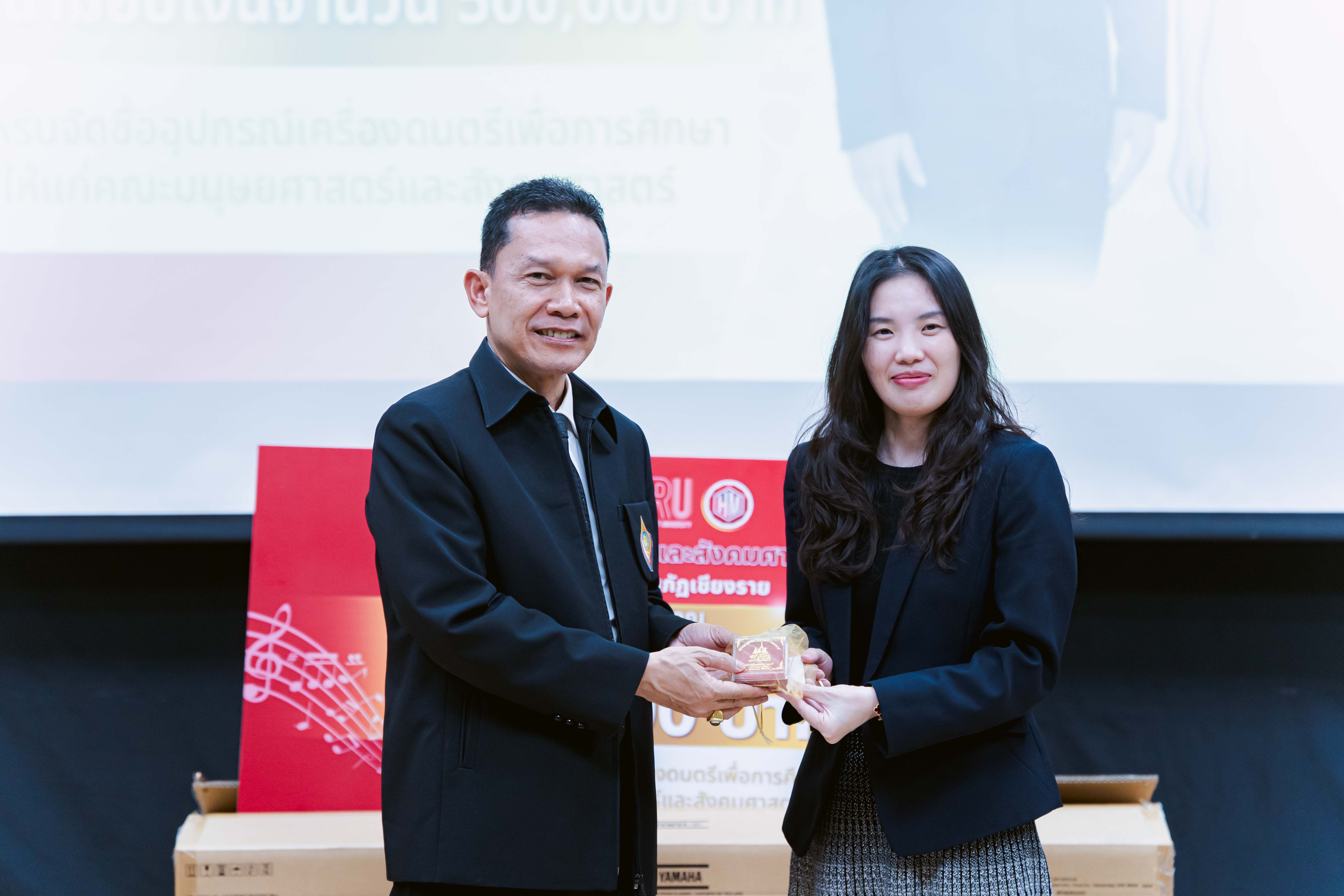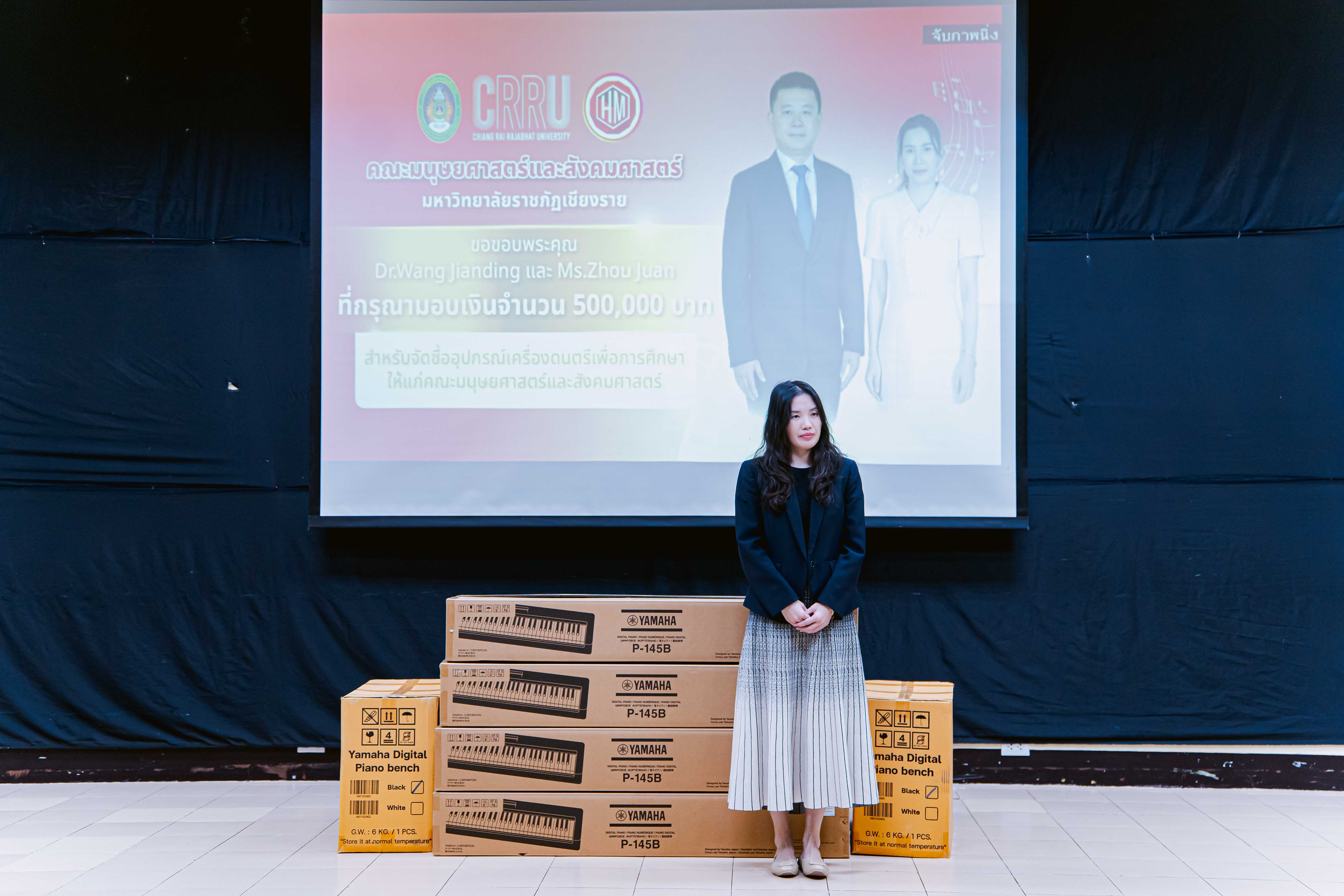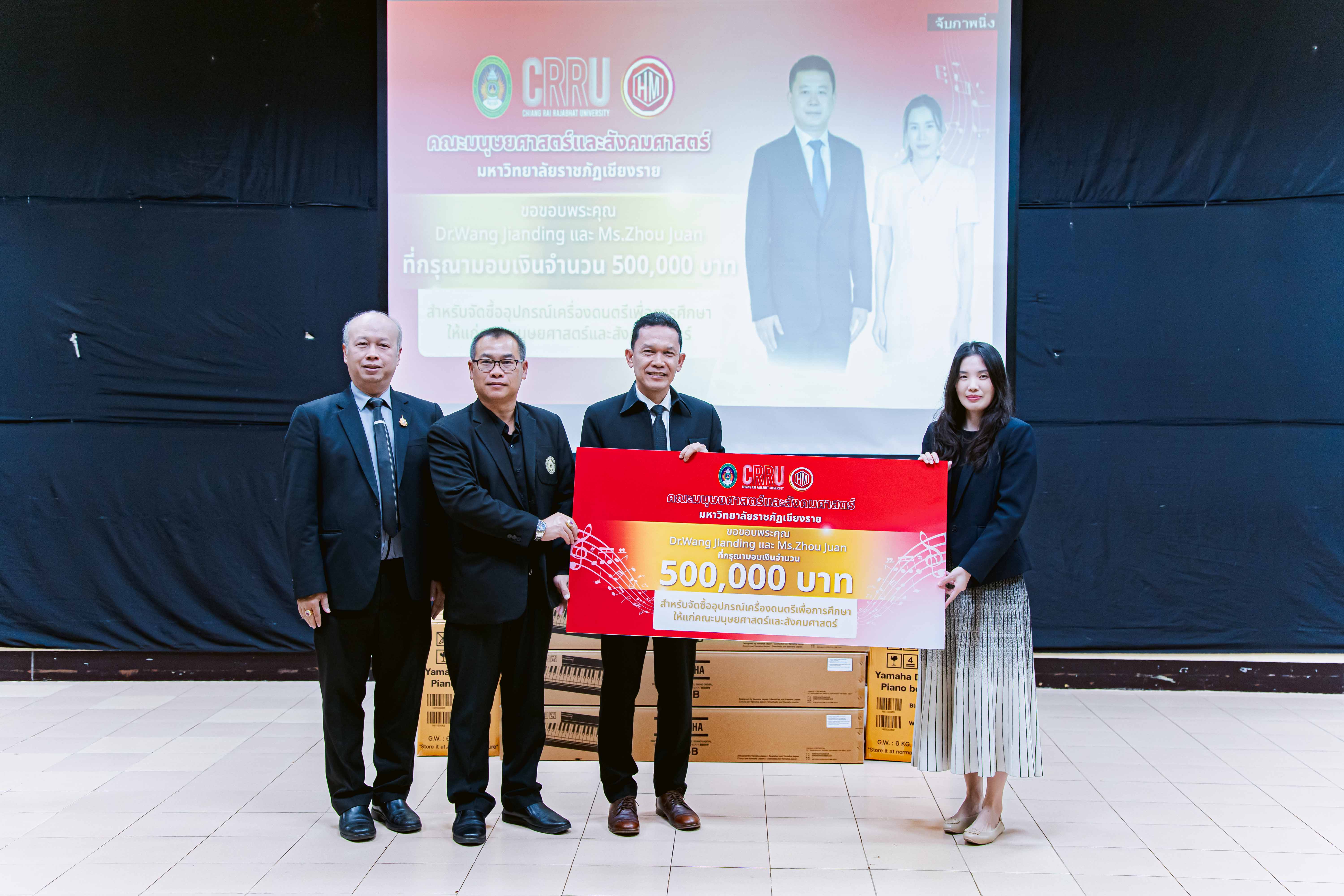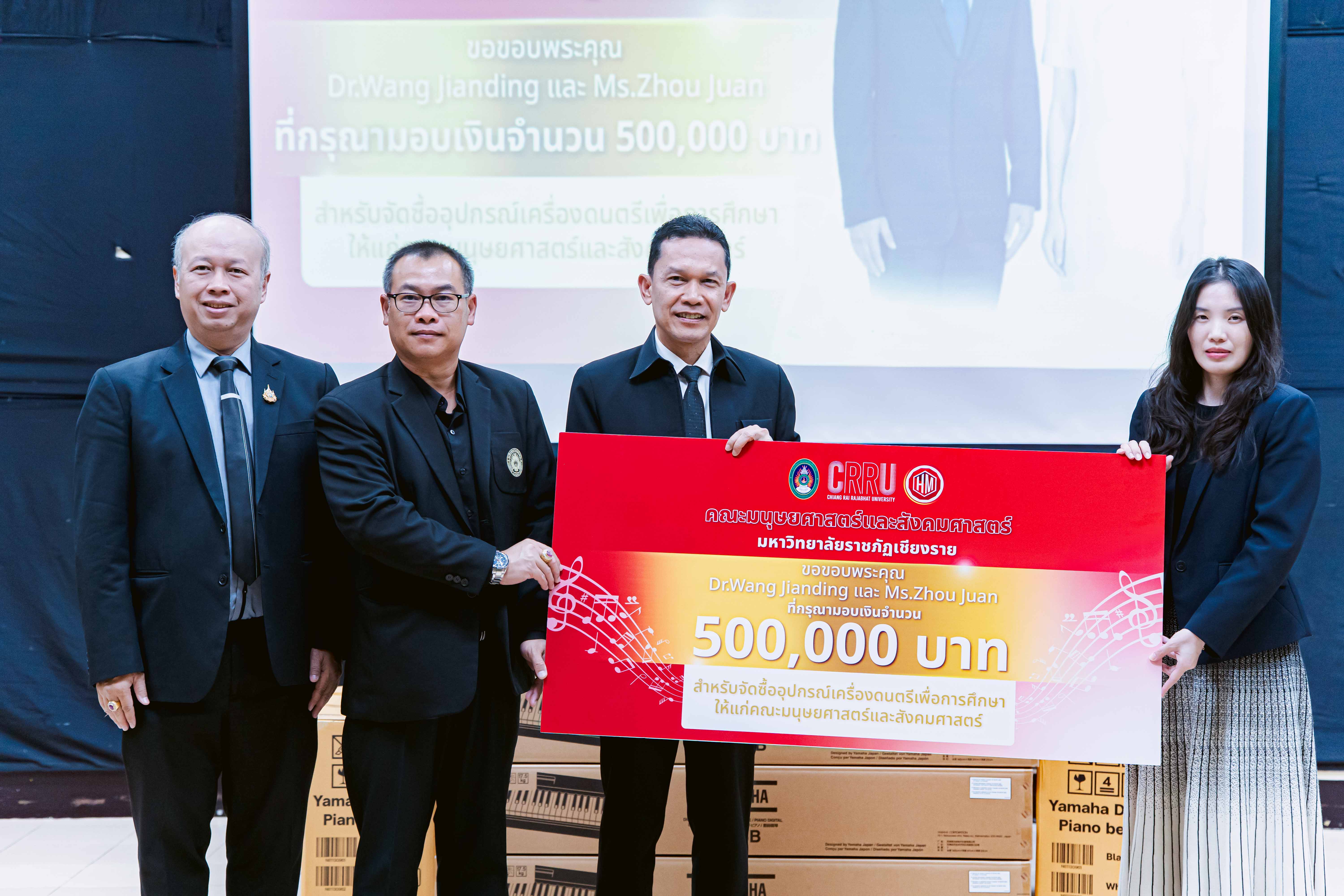✨คณะมนุษยศาสตร์และสังคมศาสตร์ มหาวิทยาลัยราชภัฏเชียงราย ขอขอบพระคุณ Dr. Wang Jianding และ Ms. Zhou Juan ที่กรุณามอบเงินจำนวน 500,000 บาท สำหรับจัดซื้ออุปกรณ์เครื่องดนตรีเพื่อนการศึกษา วันที่ 28 ตุลาคม 2568 คณะมนุษยศาสตร์และสังคมศาสตร์ จัดพิธีรับมอบเงินจำนวน 500,000 บาท สำหรับจัดซื้ออุปกรณ์เครื่องดนตรีเพื่อนการศึกษา โดยมี รองศาสตราจารย์ ดร.ไพโรจน์ ด้วงนคร อธิการบดี ผู้ช่วยศาสตราจารย์ ดร.สุทัศน์ คล้ายสุวรรณ์ รองอธิการบดี ผู้ช่วยศาสตราจารย์ ดร.ปฏิพันธ์ อุทยานุกูล คณบดีคณะมนุษยศาสตร์และสังคมศาสตร์ เป็นตัวแทนรับมอบทุนจัดซื้ออุปกรณ์เครื่องดนตรี ในครั้งนี้ ณ ห้องเรียนรวมตึกดนตรี คณะมนุษยศาสตร์และสังคมศาสตร์ มหาวิทยาลัยราชภัฏเชียงราย