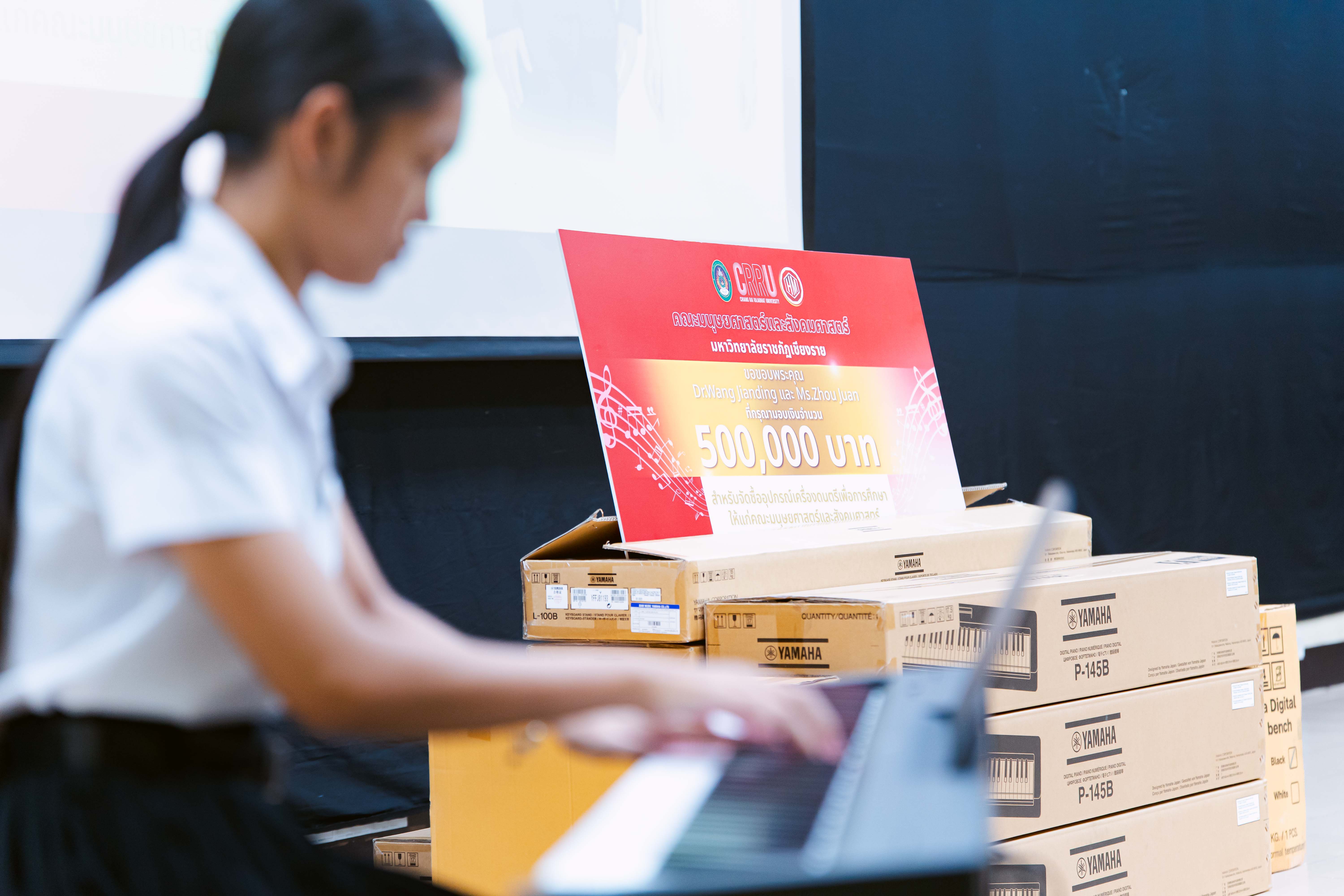 พิธีรับมอบเงินจำนวน 500,000 บาท สำหรับจัดซื้ออุปกรณ์เครื่องดนตรีเพื่อนการศึกษา